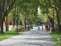 根据对沿线空间与滨水绿化空间的研究与踏勘,根据现状保留部分高大乔木,整形修剪,对工程施工造成破坏的绿化进行修复,同时下层采用宿根地被及花灌木点缀,打造多彩的林荫花径。提升道路沿线景观品质,增强景区整体风貌;在滨水岸线区域增加水生植物,清理水体藻类,在保证岸边开阔通透的景观视线的同时,以多层次、多季相、多色彩的组合打造野趣自然的滨水景观风貌。