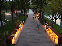 打造以“人文星河区、沉浸活力区与文艺荟萃区”三大特色景观功能区,依附湖湾特色,串联构建东蠡湖滨水友好+空间;以“关注行人、儿童友好、宠物友好、运动友好、生态友好”为核心打造点,沉浸式打造全龄化有氧特色活力圈与24小时持续活力水岸线;在核心入口处修复重构凤仪桥、运动驿站等重要建筑设施,重新激活其多元功能,为日后的可持续运营提供了可靠保障。